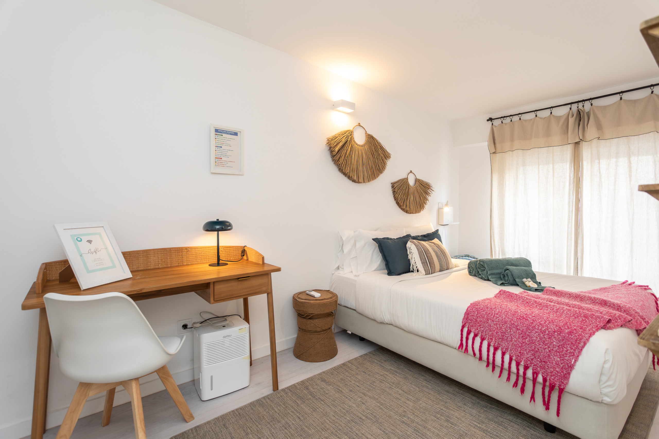 The apartment in Cascais has 1 bedroom and capacity for 3 people (max. 2 adults). With 44 m², it features a modern and cosy decoration, with soft tones and natural elements that create a relaxing and bright environment.