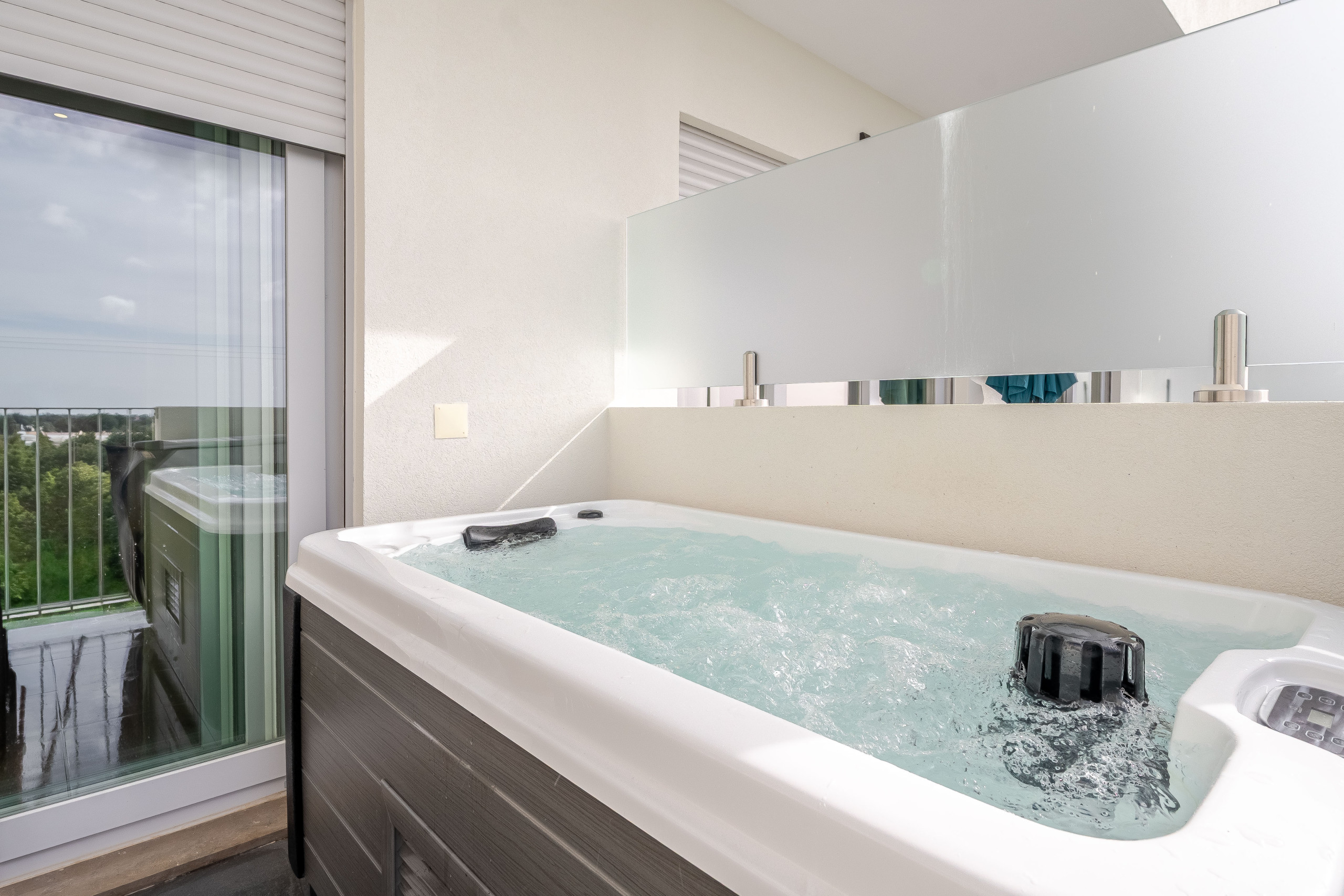 On the outside, it features a jacuzzi on the balcony — the perfect setting to relax at any time of the day.